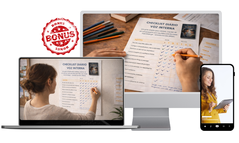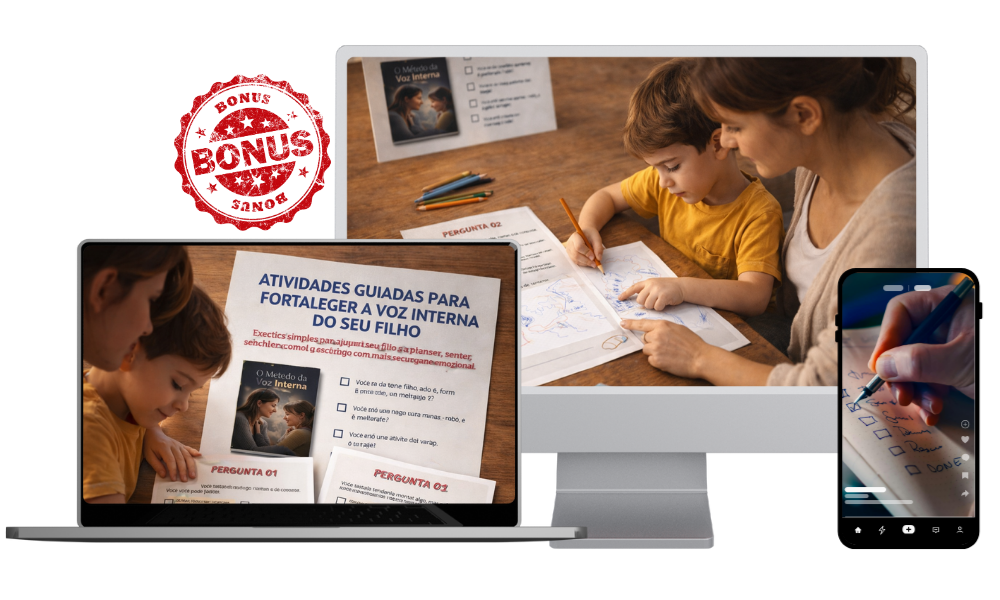 Ao aplicar o Método da Voz Interna, as correções deixam de ser momentos de tensão e passam a ser oportunidades de orientação e conexão. Você ganha mais clareza sobre o que dizer, mesmo nos dias difíceis, e seu filho começa a errar com menos medo e mais segurança emocional. Com o tempo, a dinâmica da casa muda — menos culpa, mais diálogo e uma voz interna mais forte sendo construída todos os dias.